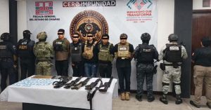 Los detenidos fueron identificados como Arek, alias “El Pequeño”, originario de Guadalajara, Jalisco; Julio, alias “Moreno”, de Tuxtla Gutiérrez; Iván, alias “Teto”, de Guadalajara; Alejandro, alias “Barbas”, también de Guadalajara; y Fernando, alias “Manchas”, originario de Campeche.